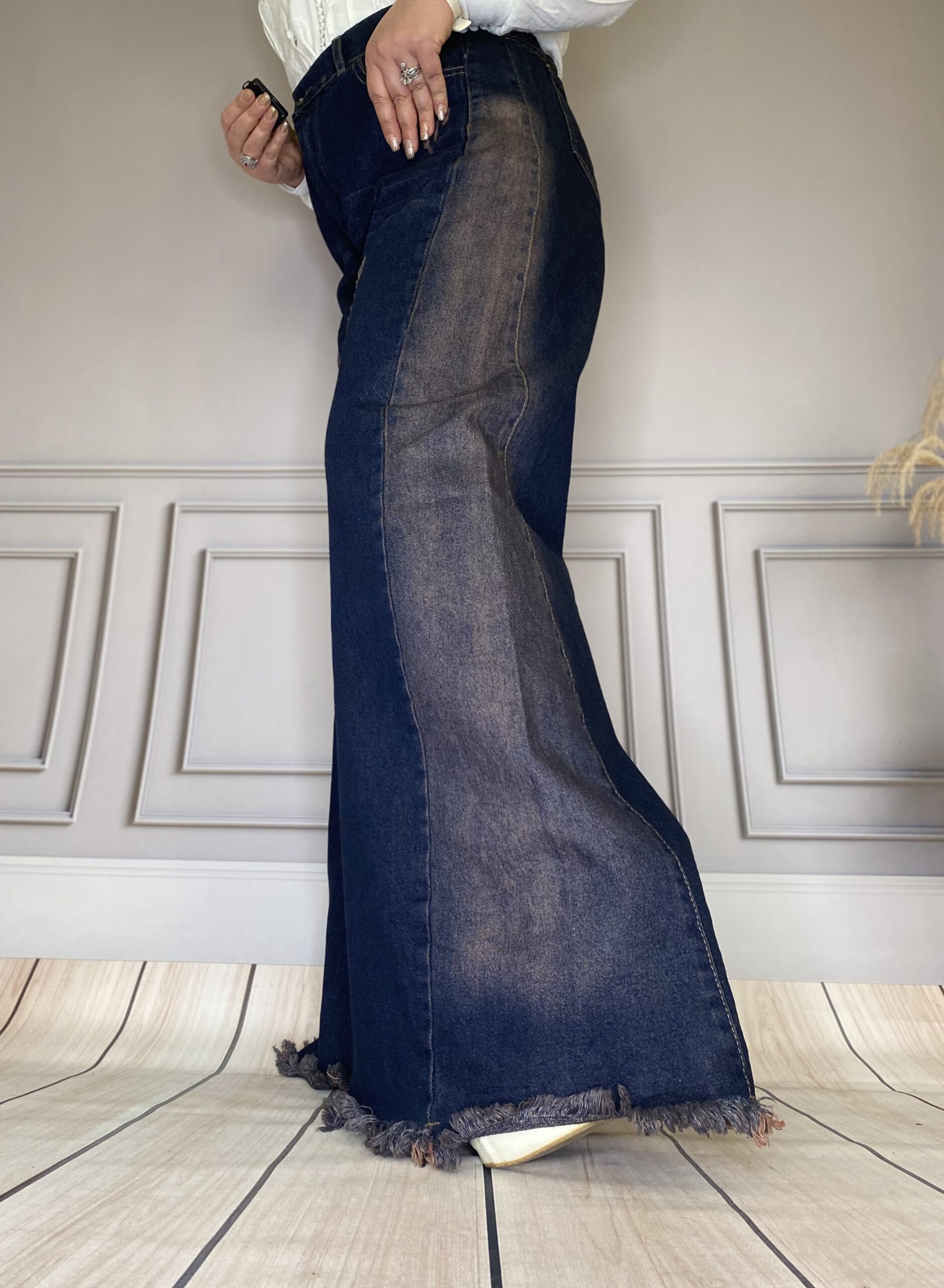 تینت صورتی در این مدل، آن را از سایر شلوارهای جین متمایز میکند. رنگ صورتی ملایم در کنار پارچه جین، ترکیبی لطیف اما مدرن ایجاد میکند. این تینت میتواند به صورت هالهای ملایم در بخشهایی از شلوار دیده شود و جلوهای خاص به آن بدهد.